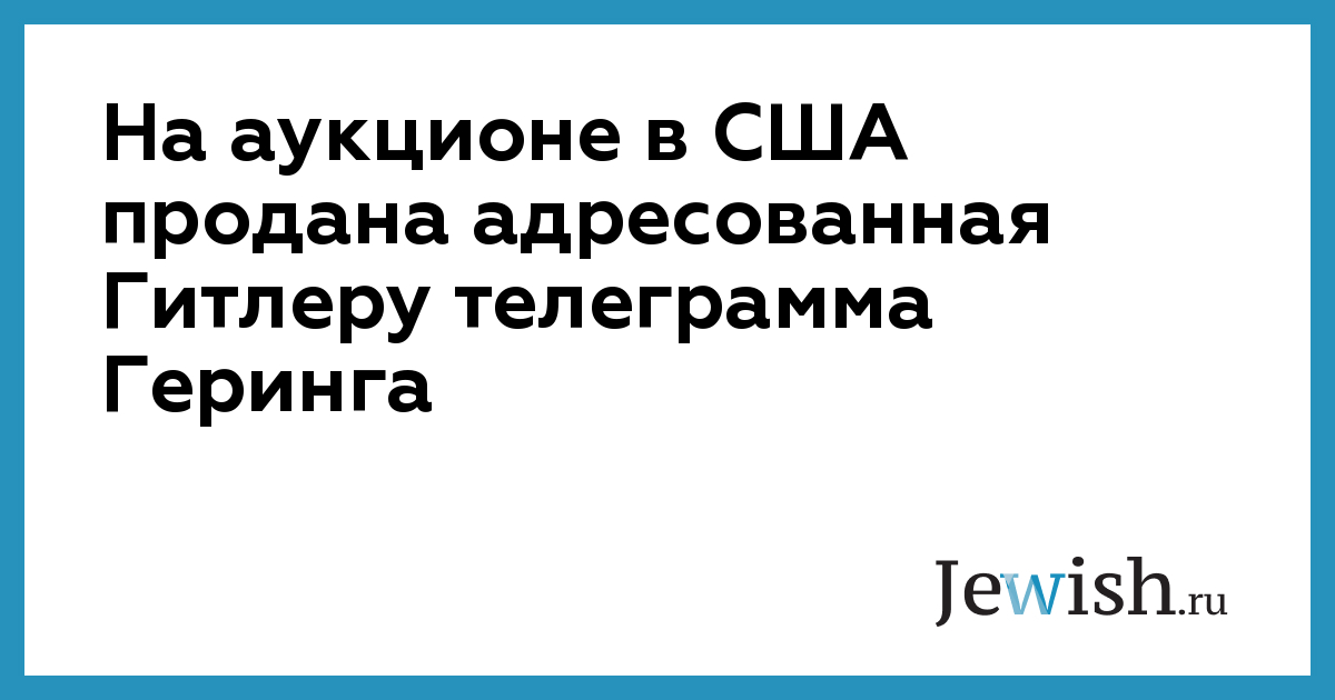 На аукционе в США продана адресованная Гитлеру телеграмма Геринга