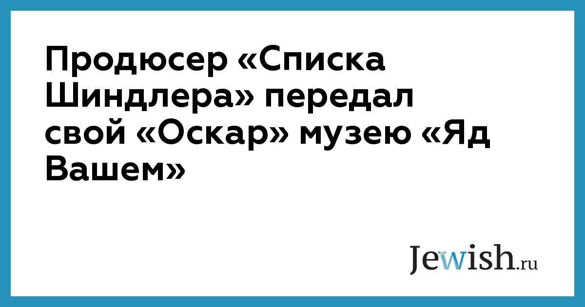 Продюсер «Списка Шиндлера» передал свой «Оскар» музею «Яд Вашем»
