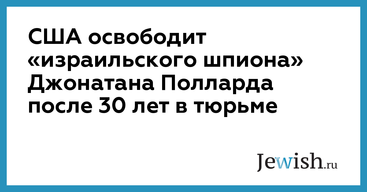 Джонатан Поллард, арестованный в США в 1985 году и приговоренный к пожизненному заключению за шпионаж в пользу Израиля, будет выпущен на свободу 20 ноября этого года. О скором освобождении бывшего аналитика военной разведки США сообщили его адвокаты, ссылаясь на решение Комиссии США по вопросам условного освобождения заключенных. По условиям амнистии, Поллард в течение пяти лет не сможет покинуть США, пишет