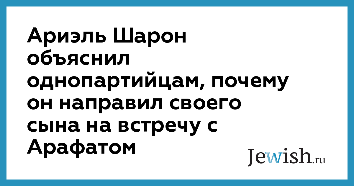 "Я отправил его" – сказал Шарон собравшимся в Кфар Маккабия в Рамат Гане. – "Я прошу прощения, но я воспринимаю эти порицания как критику в мой личный адрес. И я хочу, чтобы в данном вопросе все было предельно ясно: я направил своего сына именно для того, чтобы заявить им (палестинцам), что мы не прекратим борьбу с террором, и не будем вести переговоры, пока идет стрельба".