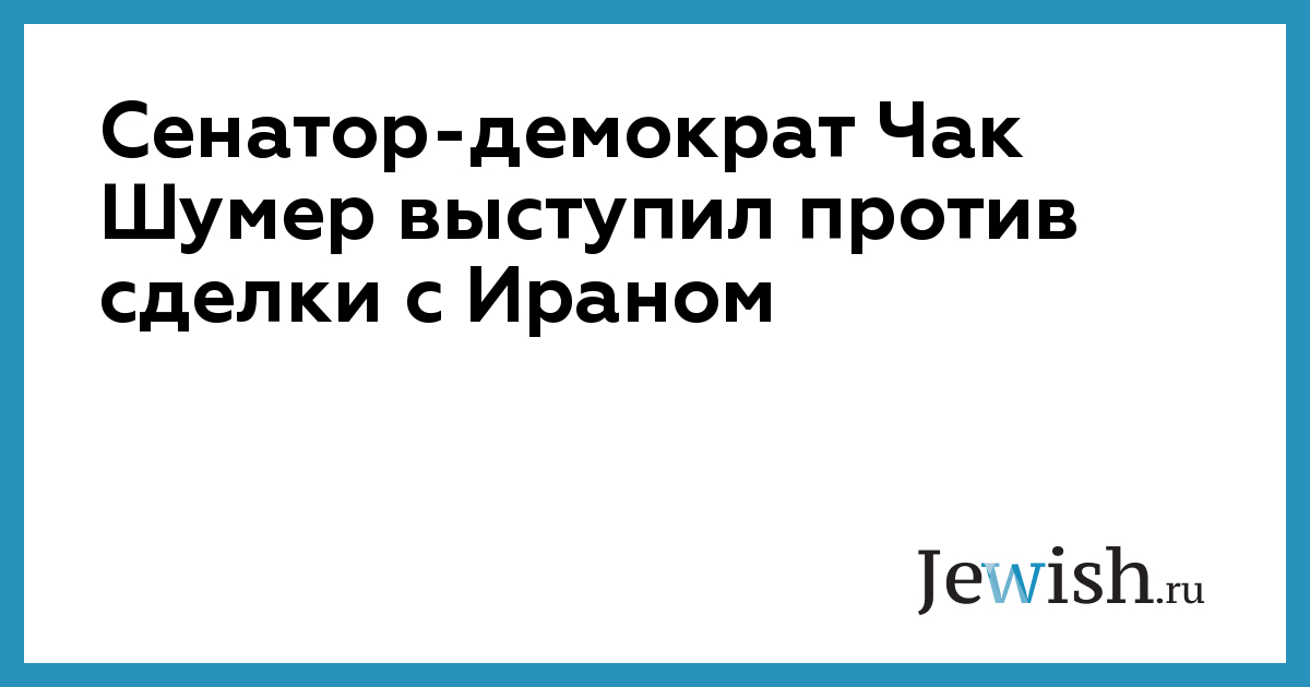 Сенатор от Нью-Йорка Чак Шумер, один из лидеров Демократической партии США, заявил, что проголосует против соглашения по ядерной программе Ирана. По мнению политика, есть «слишком большой риск, что Иран использует соглашение в своих гнусных целях», приводит его слова