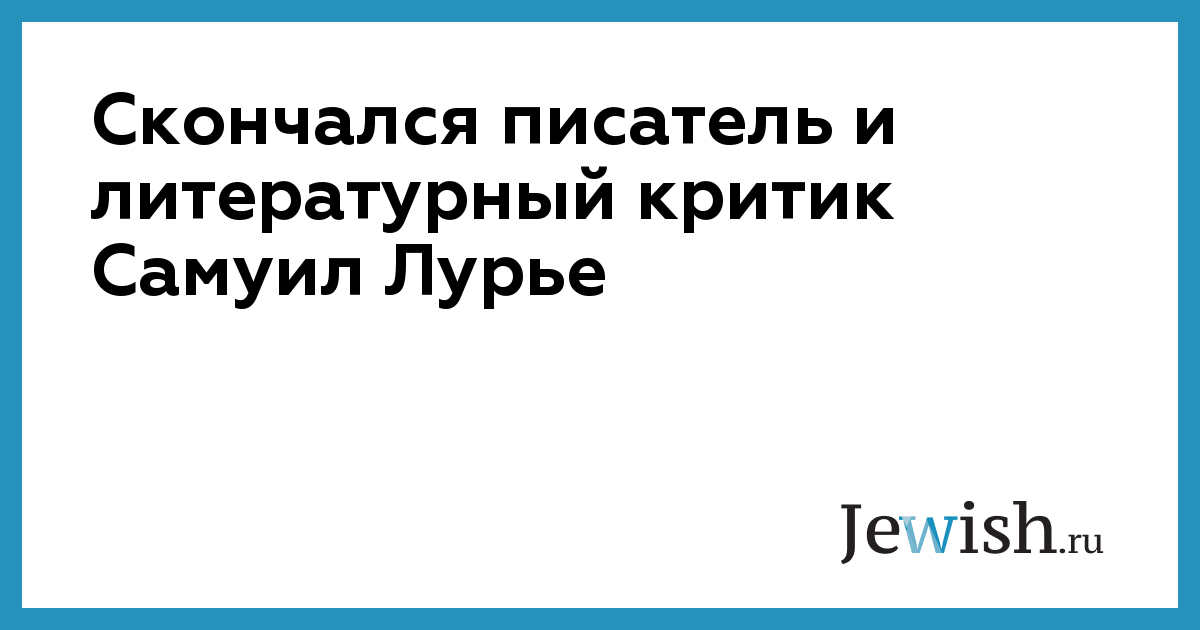 Скончался писатель и литературный критик Самуил Лурье