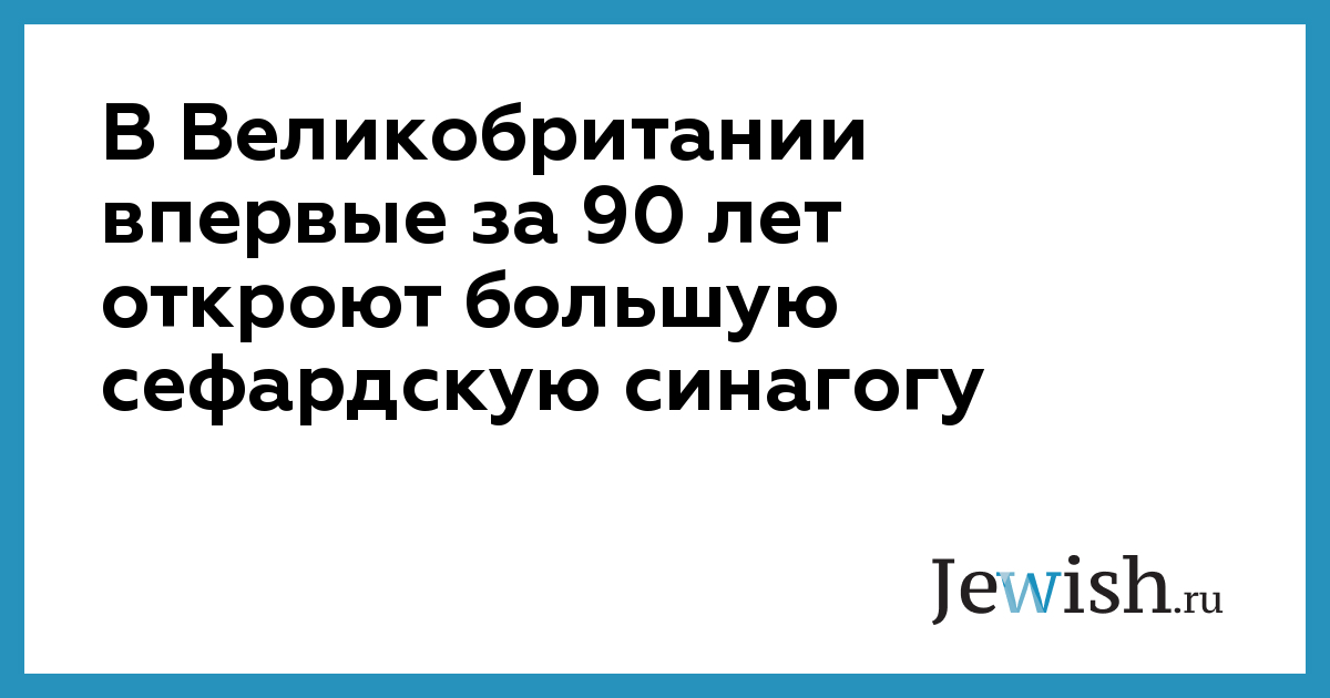 В Великобритании впервые за 90 лет откроют большую сефардскую синагогу