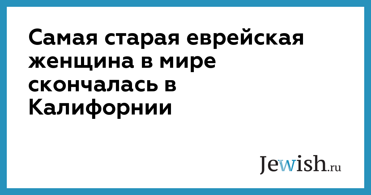 Самая старая еврейская женщина в мире скончалась в Калифорнии