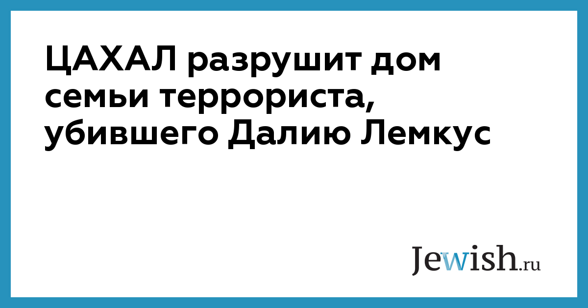 ЦАХАЛ разрушит дом семьи террориста, убившего Далию Лемкус