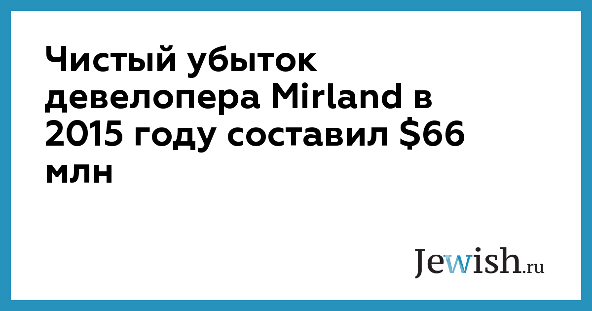Чистый убыток девелопера Mirland в 2015 году составил $66 млн