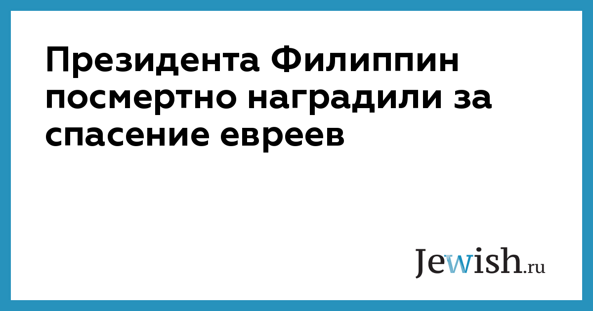 Президента Филиппин посмертно наградили за спасение евреев