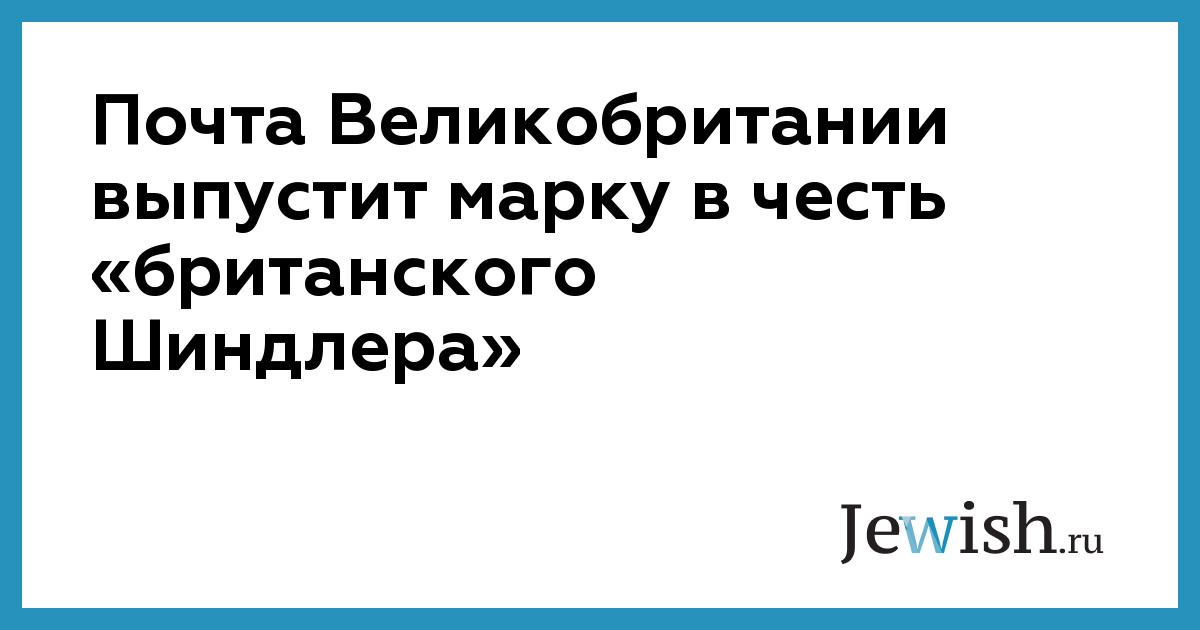 Королевская почта Великобритании сообщила о предстоящем выпуске марки, посвященной сэру Николасу Уинтону, также известному как «британский Шиндлер». Обращение с просьбой создать почтовый знак в его честь подписали более 106 тыс. человек, сообщает