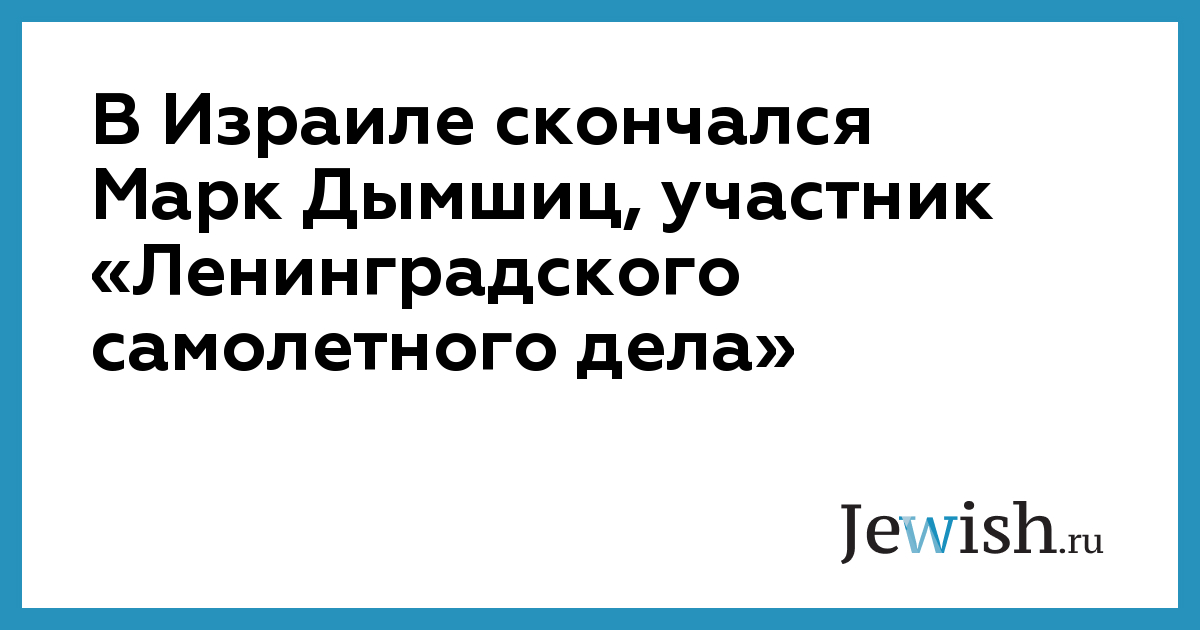 25 августа в Израиле в возрасте 88 лет скончался Марк Дымшиц – отказник, участник борьбы за свободный выезд евреев из СССР, в 1970 году приговоренный к смертной казни за планирование угона самолета в ленинградском аэропорту.