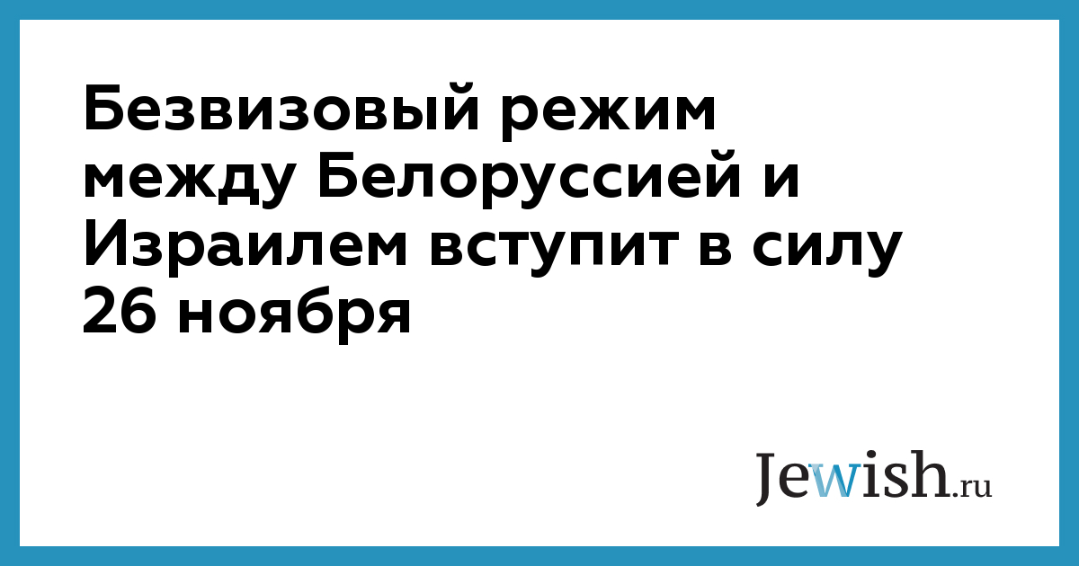 Безвизовый режим между Белоруссией и Израилем вступит в силу 26 ноября