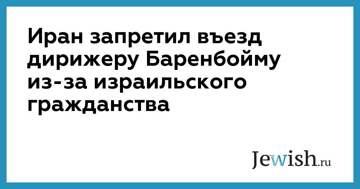 Иран отказал во въезде в страну всемирно известному режиссеру Даниэлю Баренбойму «из соображений безопасности», пишет