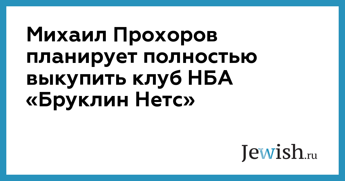 Михаил Прохоров планирует полностью выкупить клуб НБА «Бруклин Нетс»