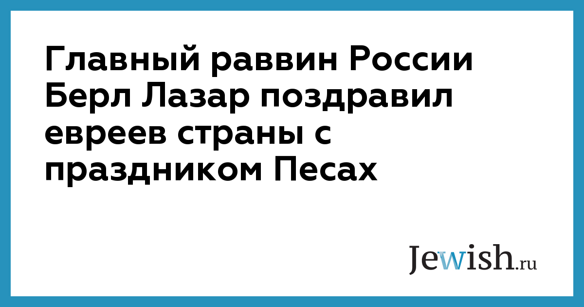Главный раввин России Берл Лазар поздравил евреев страны с праздником Песах