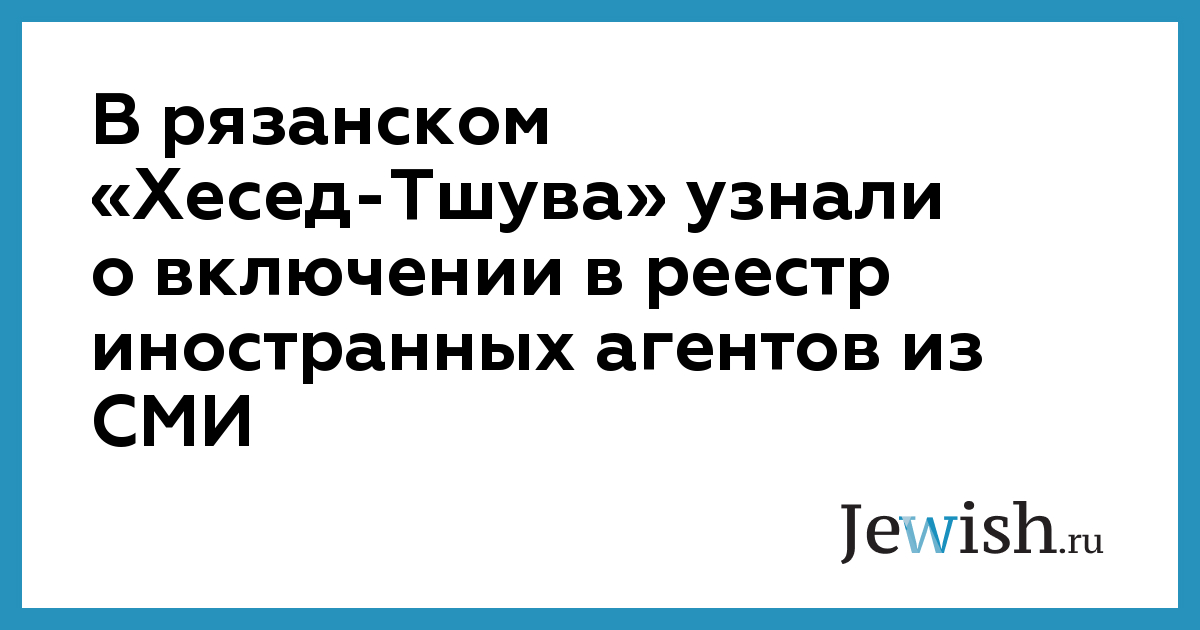 внесло Еврейский общинный культурный центр Рязанской области «Хесед-Тшува» в список организаций, выполняющих функции «иностранных агентов». Официально причины добавления «Хесед-Тшува» в реестр Минюста не уточняются. Предполагается, что причиной могло стать участие американского благотворительного фонда «Распределительный комитет "Джойнт"» в финансировании организации. Согласно принятому в России в 2012 году закону в реестр «иностранных агентов» включают негосударственные организации, которые получают финансирование из-за границы и участвуют в политической деятельности. Еврейский общинный культурный центр Рязанской области «Хесед-Тшува» стал первой еврейской организацией России, внесенной в этот список.