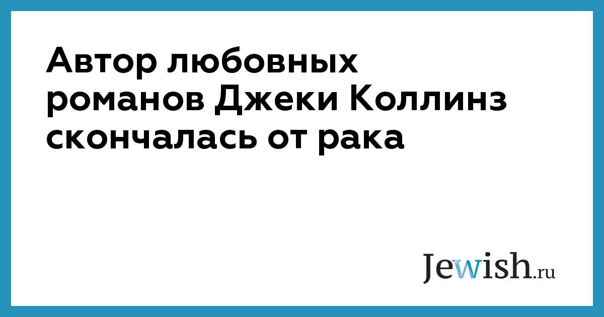Автор любовных романов Джеки Коллинз скончалась от рака