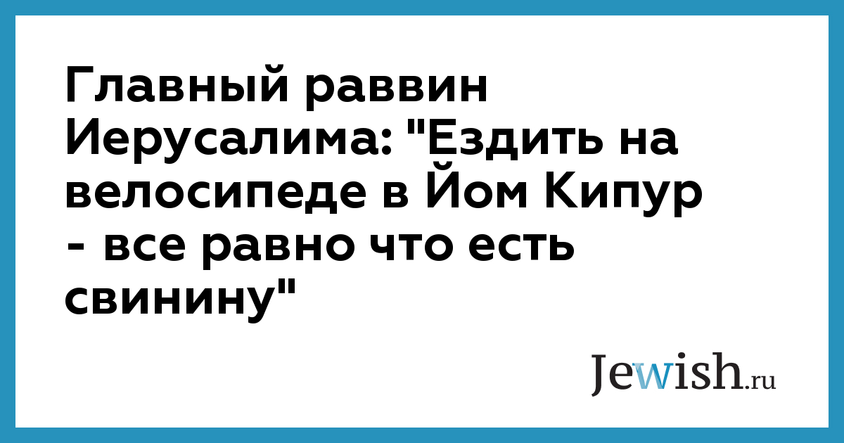 Главный раввин Иерусалима: "Ездить на велосипеде в Йом Кипур — все равно что есть свинину"