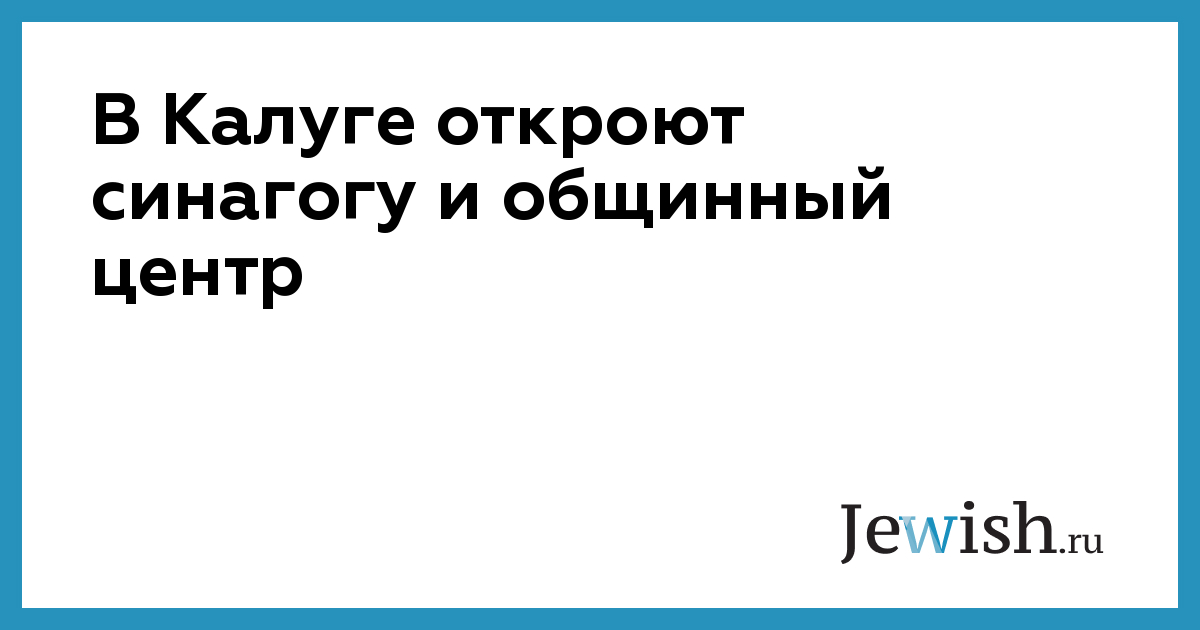 8 октября в Калуге состоится торжественное открытие синагоги и еврейского общинного центра. В торжестве примут участие президент Федерации еврейских общин России Александр Борода и главный раввин России Берл Лазар.