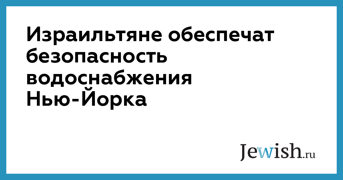 Израильтяне обеспечат безопасность водоснабжения Нью-Йорка