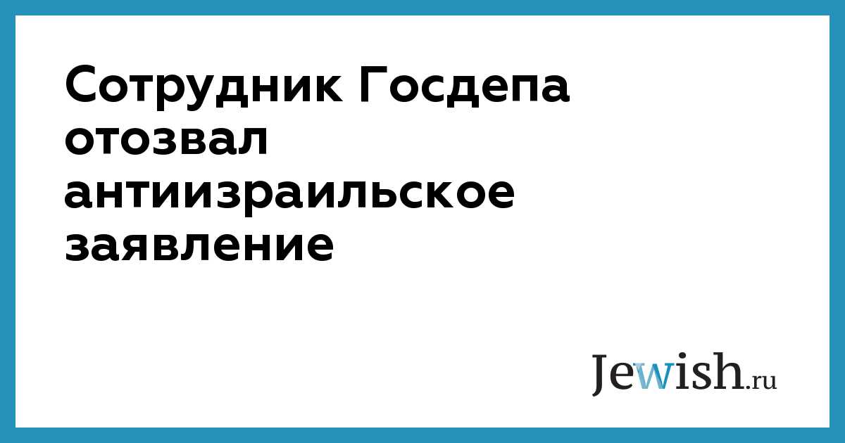 Сотрудник Госдепа отозвал антиизраильское заявление