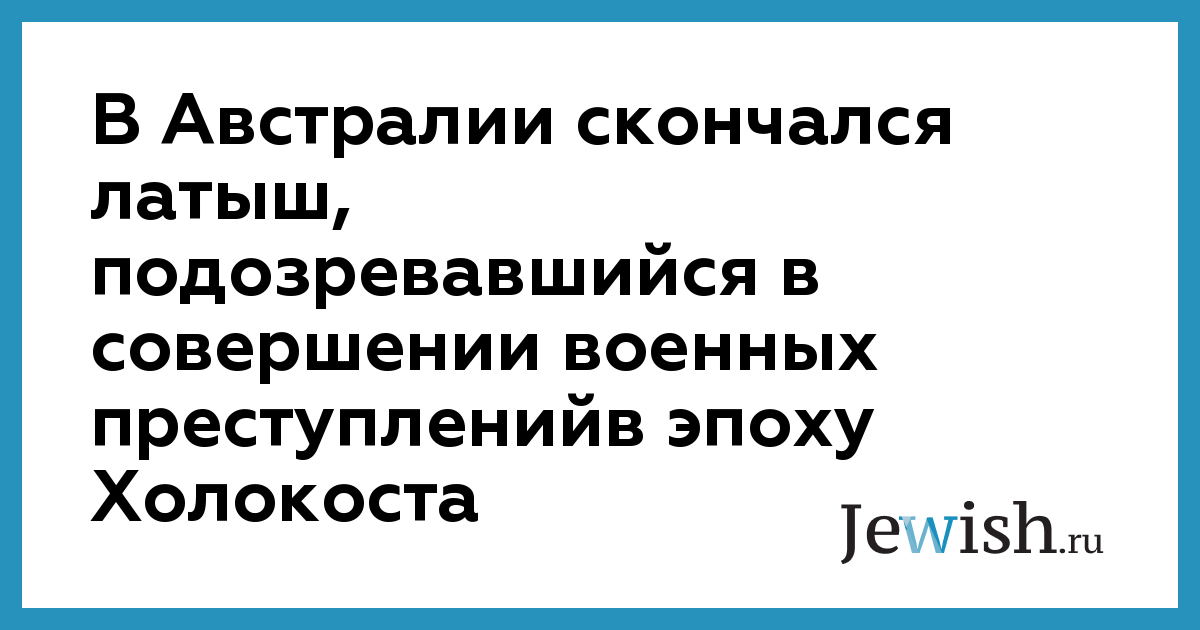 В Австралии скончался латыш, подозревавшийся в совершении военных преступленийв эпоху Холокоста