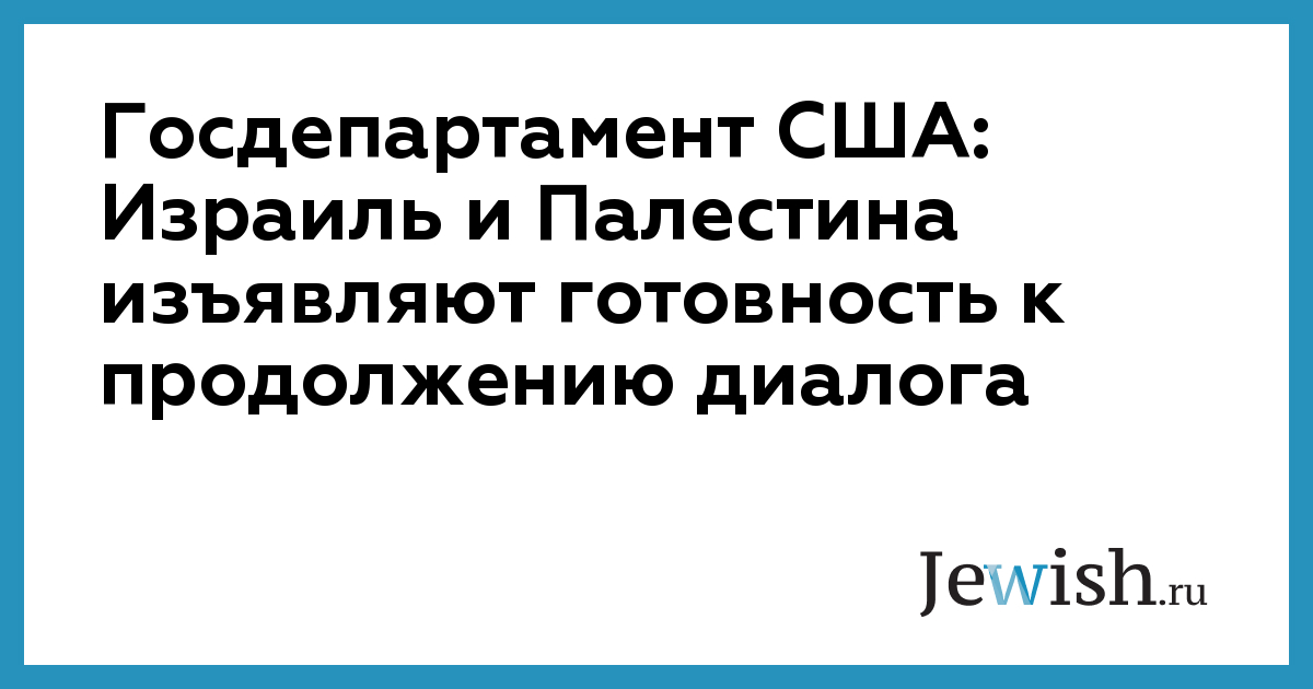 Госдепартамент США: Израиль и Палестина изъявляют готовность к продолжению диалога