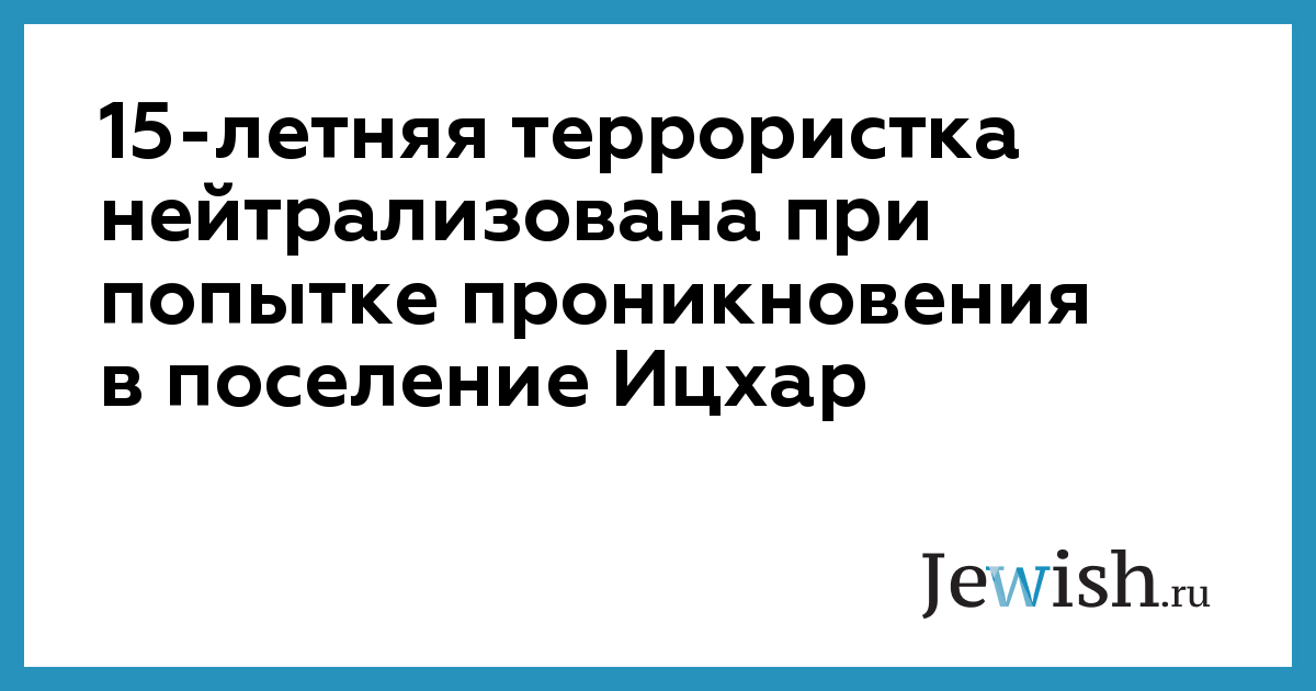 15-летняя террористка нейтрализована при попытке проникновения в поселение Ицхар