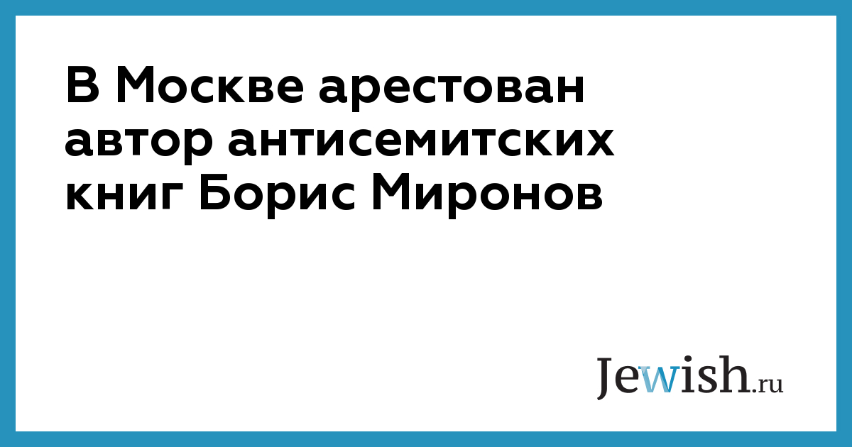 Журналист Борис Миронов, бывший председатель Комитета РФ по печати, был задержан в своей квартире в Москве вечером 26 октября. По предварительным данным, арест связан с публикацией двух сборников под названием «Русские. Последний рубеж» и «Битва с игом иудейским», над которыми Миронов работал в период с 2007 по 2008 год, сообщает
