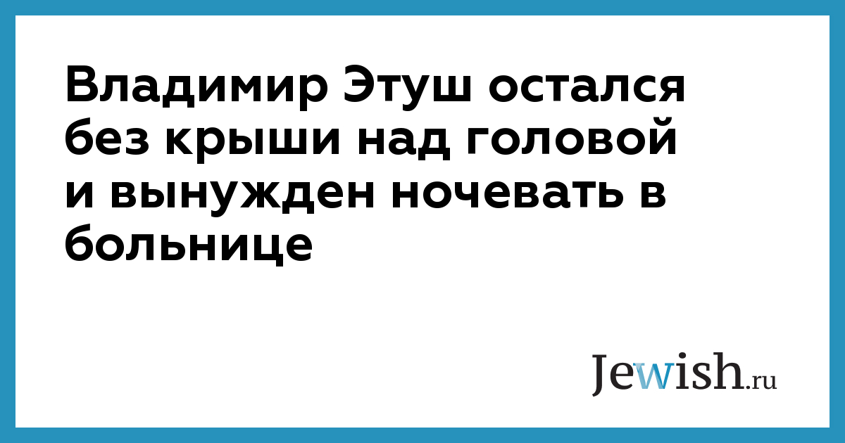 Владимир Этуш остался без крыши над головой и вынужден ночевать в больнице