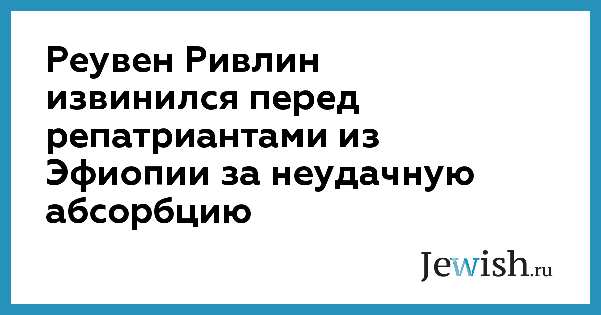Реувен Ривлин извинился перед репатриантами из Эфиопии за неудачную абсорбцию