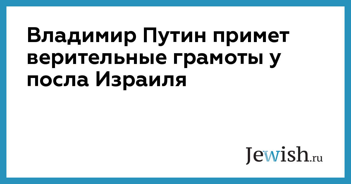 Владимир Путин примет верительные грамоты у посла Израиля