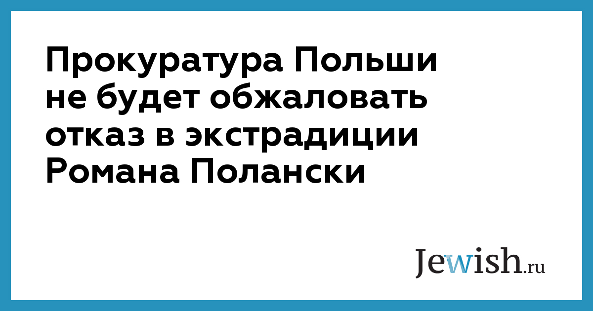 Прокуратура Польши не будет обжаловать отказ в экстрадиции Романа Полански