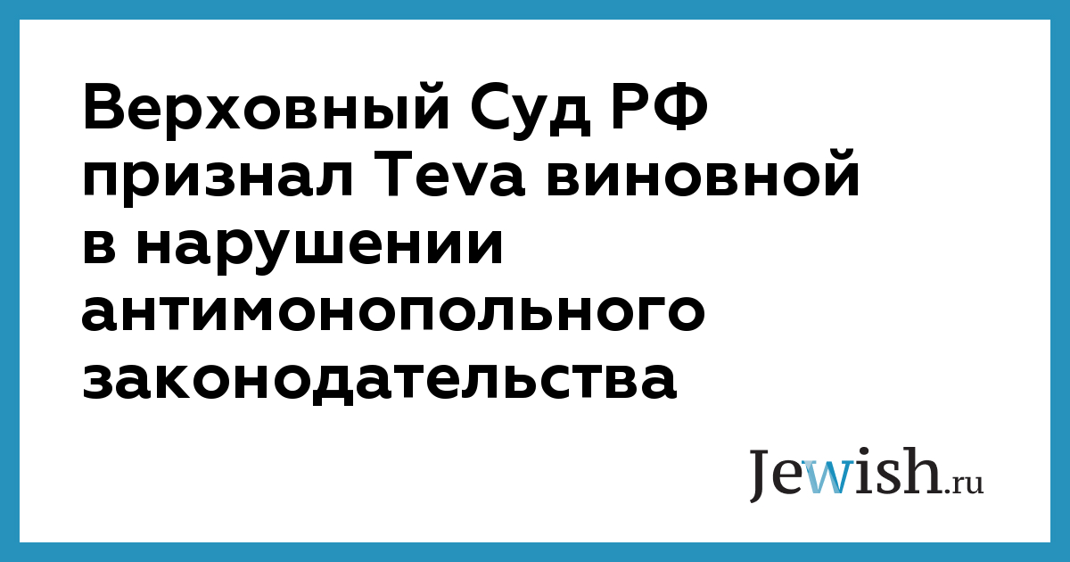 Верховный Суд РФ завершил двухлетнее судебное разбирательство по делу израильской фармакологической компании Teva. Федеральная антимонопольная служба (ФАС России) оспаривала законность действий TEVA на рынке монопольного лекарственного препарата «Копаксон».