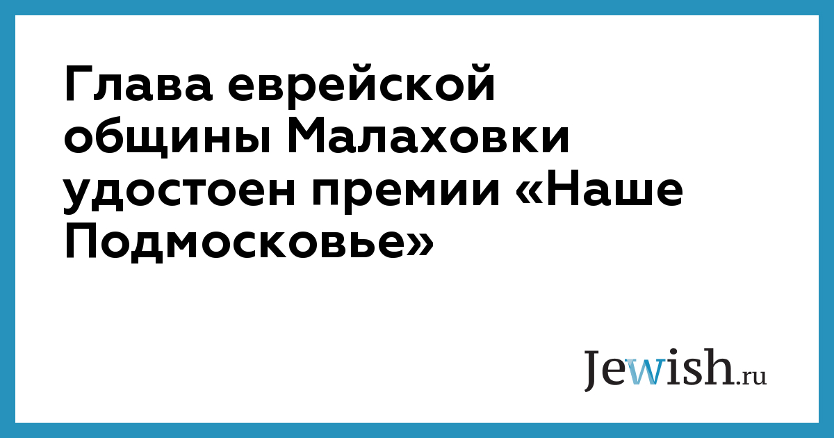 Глава еврейской общины Малаховки удостоен премии «Наше Подмосковье»