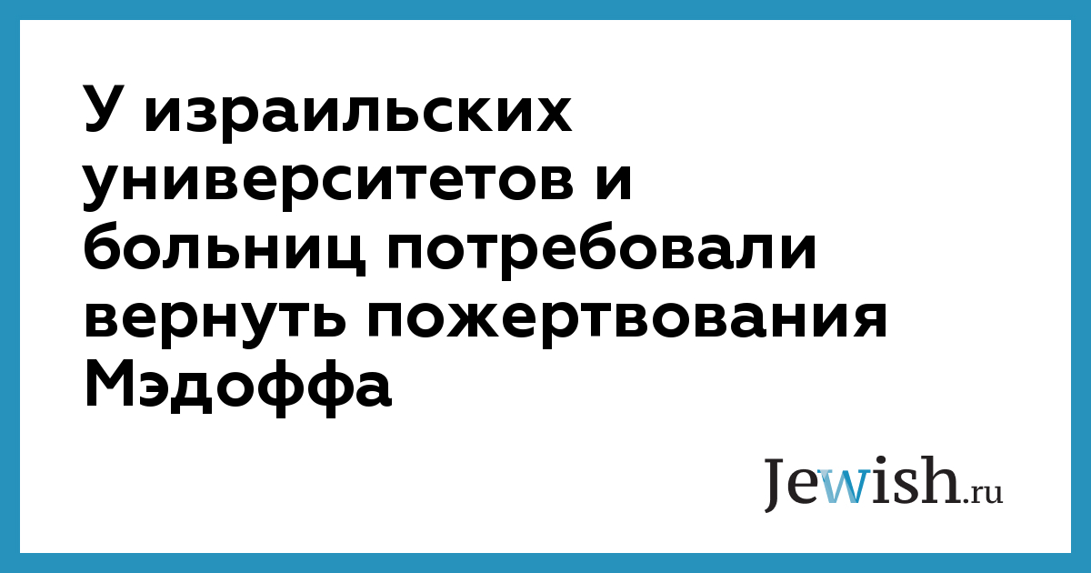 Назначенный американским судом попечитель имущества финансового мошенника Бернарда Мэдоффа подал в Тель-Авивский окружной суд иск против 30 структур, требуя от них вернуть 95 млн долларов, сообщает
