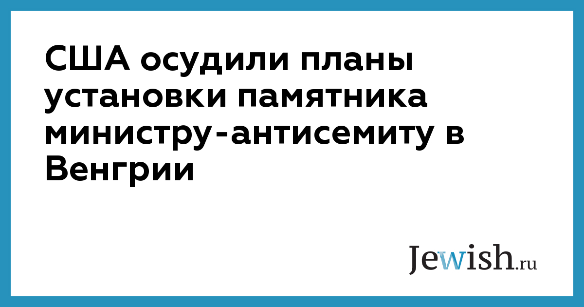 Госдепартамент США назвал «непостижимым» возможное решение властей Венгрии разрешить установку памятника Балинту Хоману – министру венгерского правительства времен Второй мировой войны, выступавшему за передачу евреев в руки нацистов.