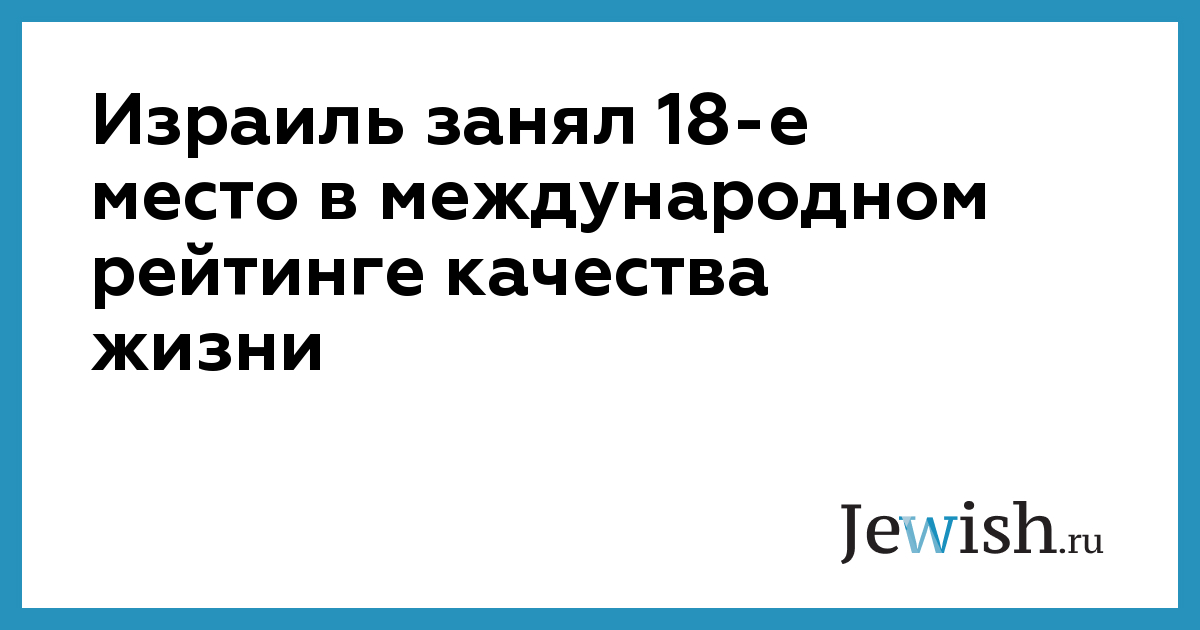 Израиль занял 18-е место в международном рейтинге качества жизни