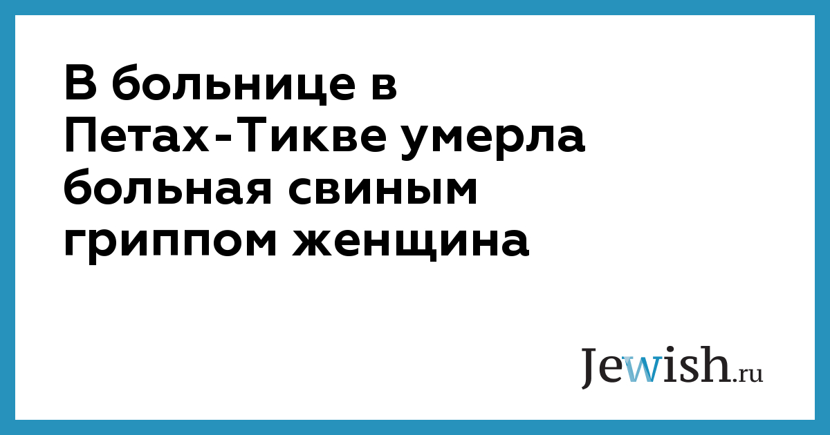 В больнице в Петах-Тикве умерла больная свиным гриппом женщина