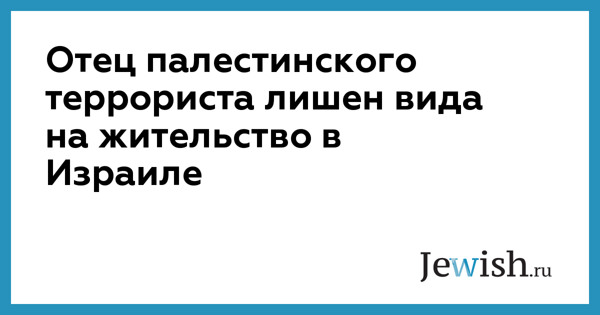 Отец палестинского террориста лишен вида на жительство в Израиле