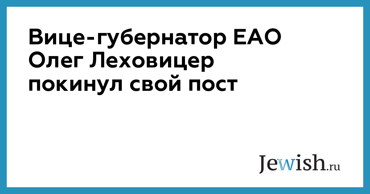 Вице-губернатор ЕАО Олег Леховицер ушел со своего поста в правительстве области. Также заявление с формулировкой «по собственному желанию» написал первый заместитель председателя правительства области Иван Благодырь, сообщает