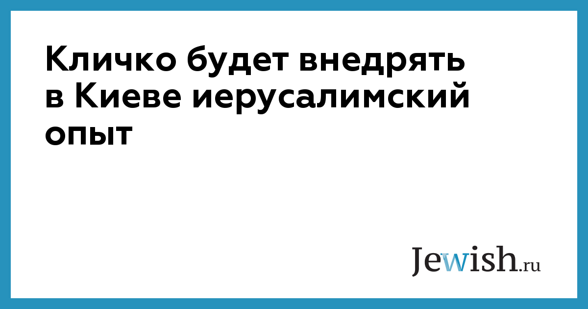 Кличко будет внедрять в Киеве иерусалимский опыт
