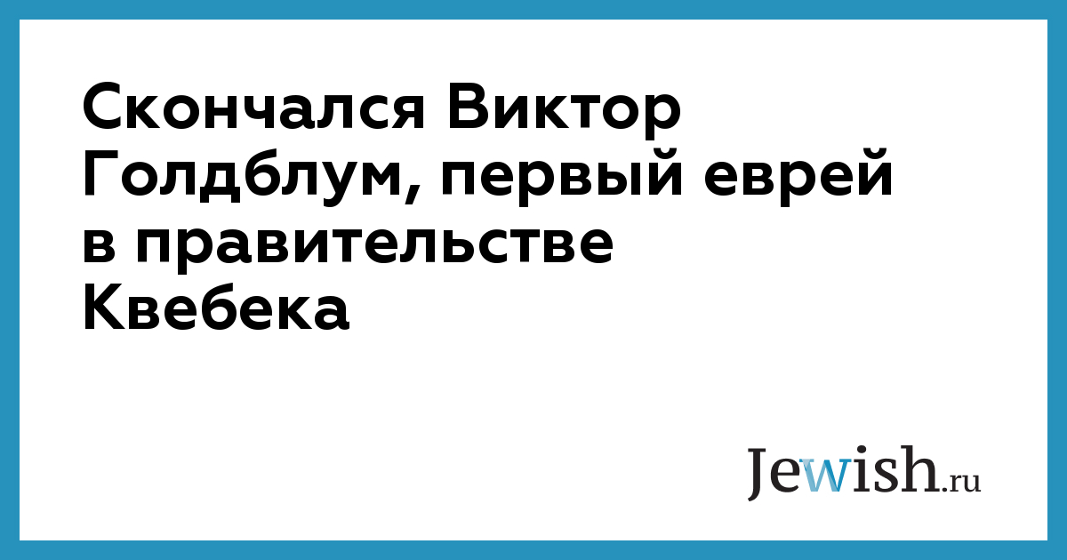 Скончался Виктор Голдблум, первый еврей в правительстве Квебека