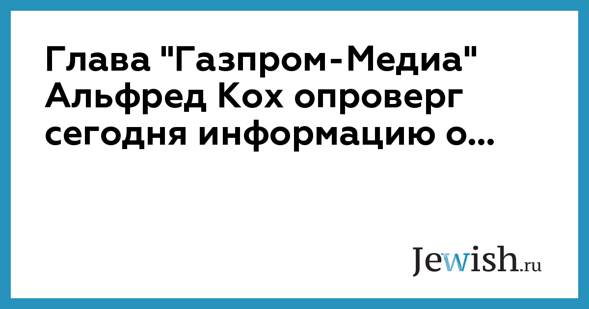 Глава "Газпром-Медиа" Альфред Кох опроверг сегодня информацию о...