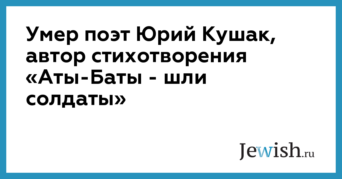 Умер поэт Юрий Кушак, автор стихотворения «Аты-Баты — шли солдаты»