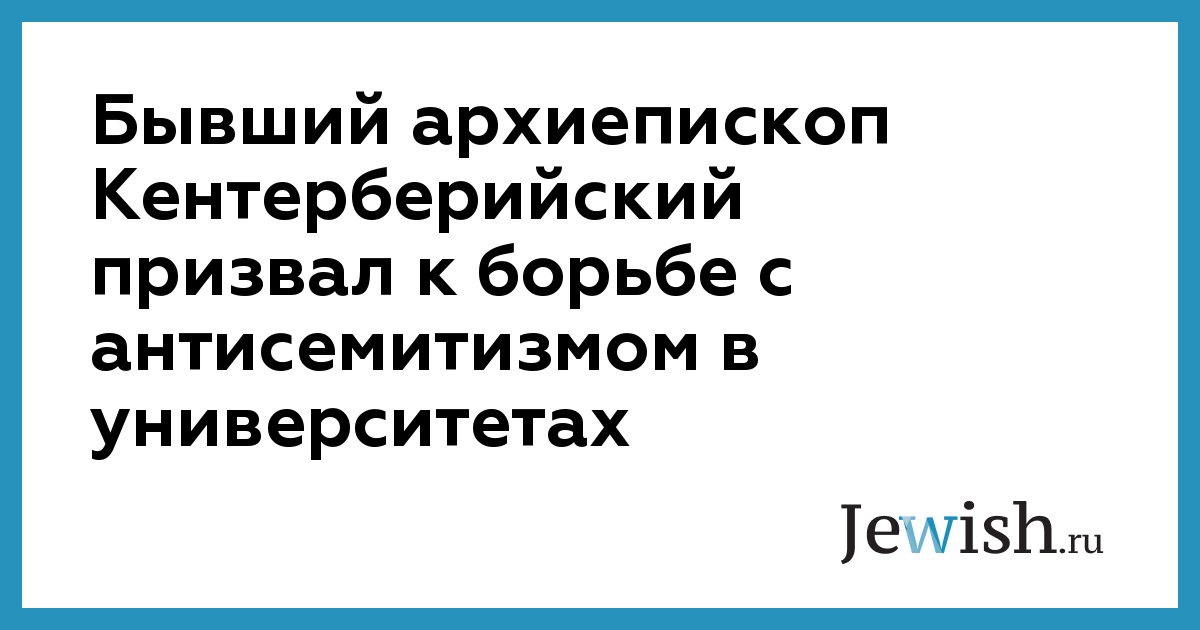 Бывший архиепископ Кентерберийский призвал к борьбе с антисемитизмом в университетах