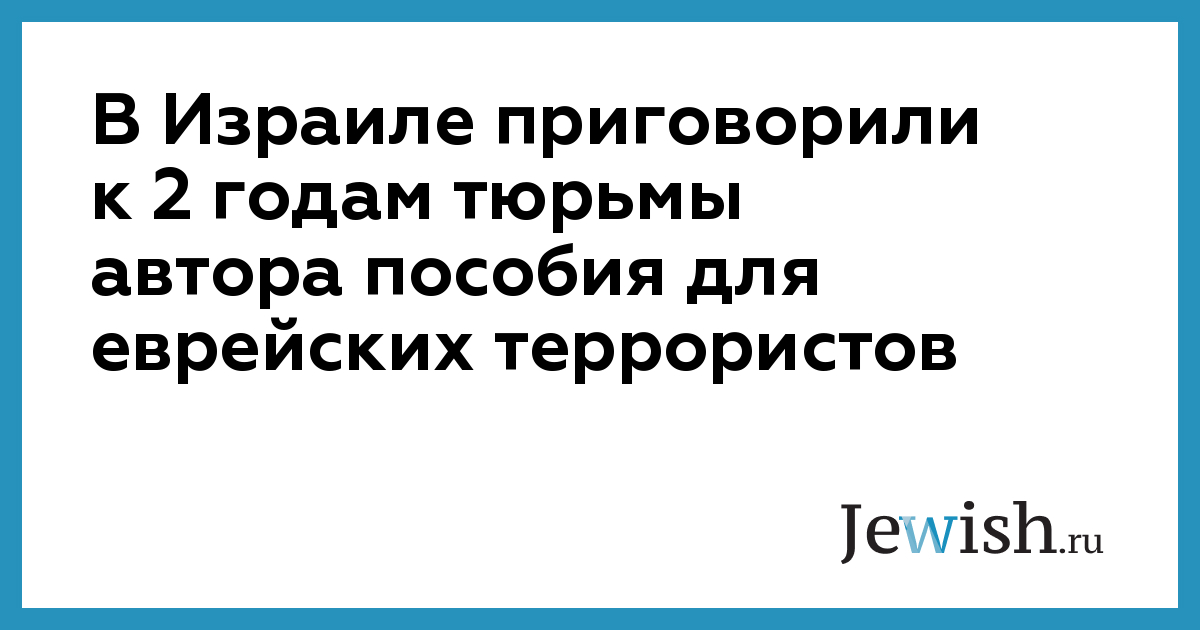 В Израиле приговорили к 2 годам тюрьмы автора пособия для еврейских террористов
