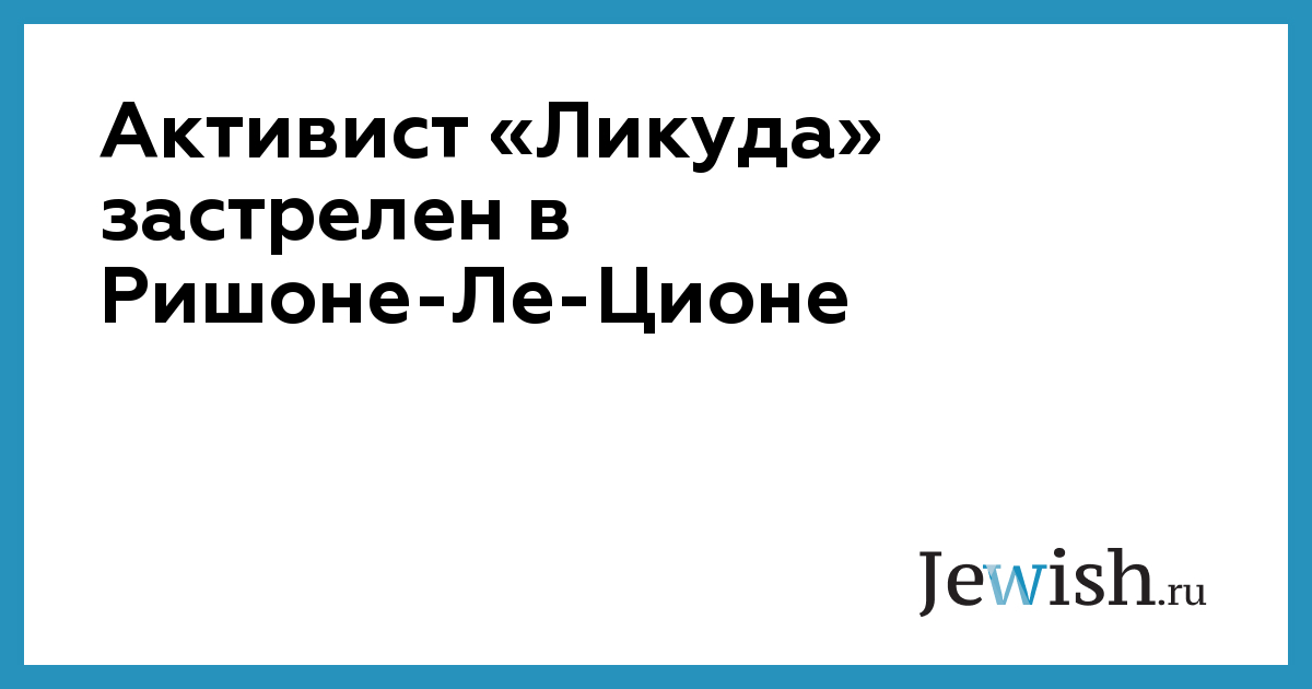 Активист «Ликуда» застрелен в Ришоне-Ле-Ционе