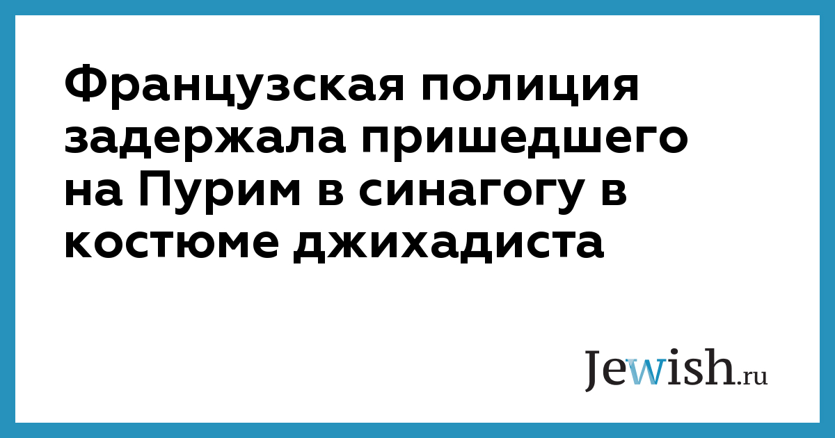 Французская полиция задержала пришедшего на Пурим в синагогу в костюме джихадиста