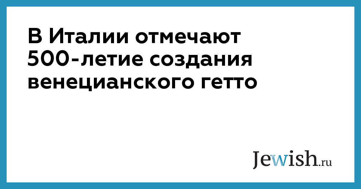 29 марта в Италии началось празднование 500-й годовщины создания еврейского гетто в Венеции. 500 лет назад, 29 марта 1516 года, власти Венецианской республики приняли решение переселить все еврейское население на отдельный остров в черте города. На этом острове ранее располагалось литейное производство, от чего и произошло название еврейского квартала («гетто» от глагола gettare). Венецианское гетто было бедным и перенаселенным, но оно же стало центром еврейской жизни Северной Италии. В XVII веке в нем проживало 5 тыс. человек — сегодня это число сократилось до 500.