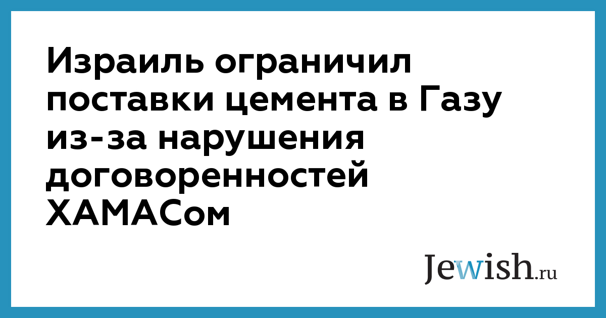 Израиль ограничил поставки цемента в Газу из-за нарушения договоренностей ХАМАСом