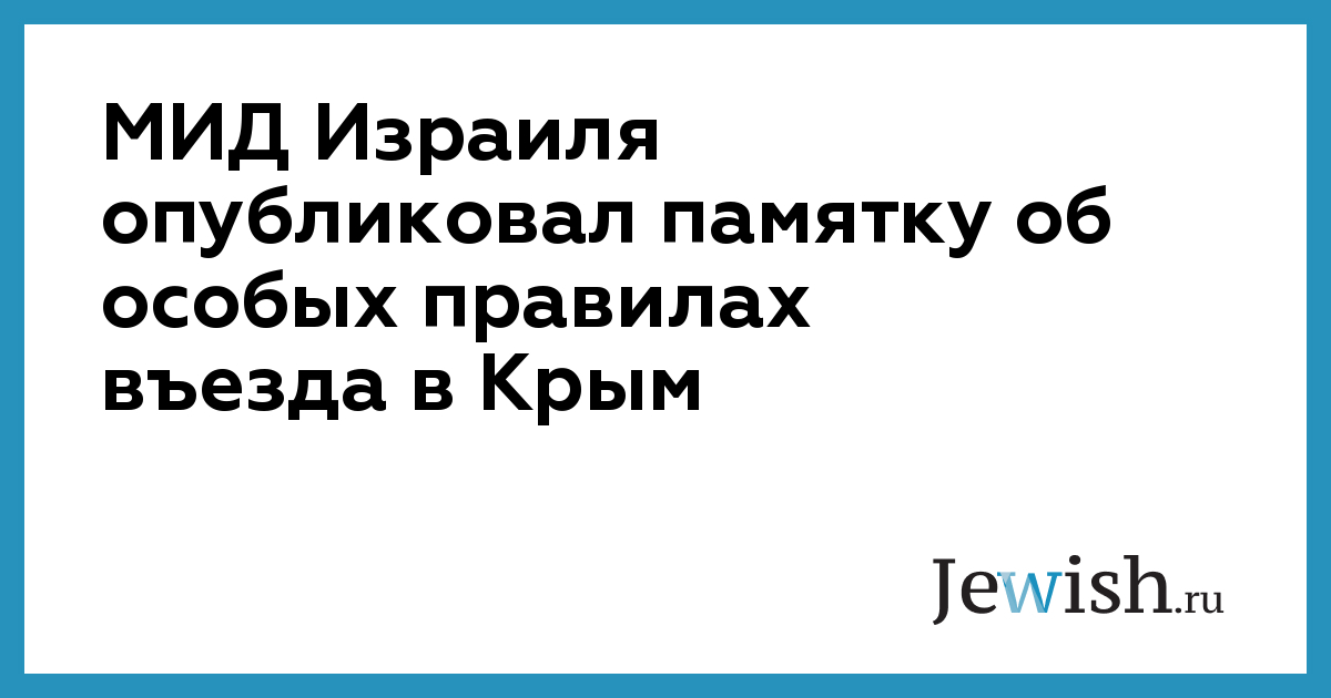 МИД Израиля опубликовал предупреждение для израильтян, планирующих поездку в Крым. В памятке подчеркивается, что въезд в Крым нелегален без получения специального разрешения от украинских властей. Прибытие в Крым без соответствующего документа может привести к уголовному преследованию со стороны Украины.